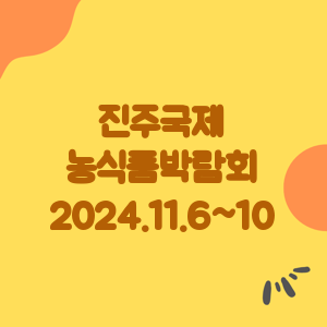 2024 진주국제농식품박람회는 2024년 11월 6일(수)부터 11월 10일(일)까지 5일간 진주종합경기장 일원에서 개최됩니다.
