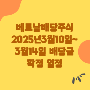 베트남 주식 시장에서 배당금 지급은 투자자들에게 매우 중요한 관심사입니다. 그렇다면 2025년 3월 10일부터 3월 14일까지의 주간 배당금 확정 일정은 어떻게 되는지 자세히 살펴볼까요?
