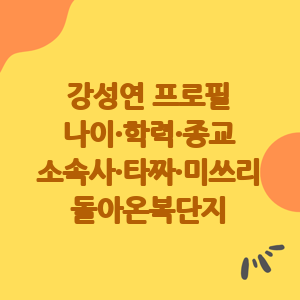 강성연의 종교는 개신교입니다. 그녀는 가톨릭에서 개신교로 개종했다고 알려져 있습니다. 현재 소속사는 디어이엔티입니다.