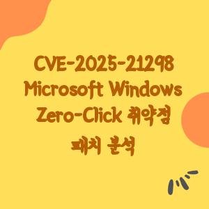 CVE-2025-21298은 Windows 운영체제의 특정 구성 요소에서 발견된 원격 코드 실행(RCE) 취약점입니다. 이 취약점은 사용자의 개입 없이도 악용될 수 있어 'Zero-Click' 취약점으로 알려져 있습니다. 공격자는 이 취약점을 악용하여 사용자의 시스템을 원격으로 장악할 수 있습니다.